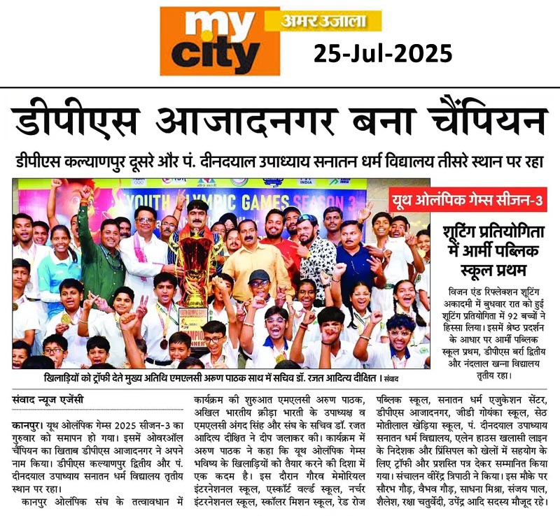 यूथ ओलंपिक गेम्स 2025 सीजन-3 का गुरुवार को समापन हो गया। इसमें ओवरऑल चैंपियन का खिताब डीपीएस आजादनगर ने अपने नाम किया। डीपीएस कल्याणपुर द्वितीय और पं. दीनदयाल उपाध्याय सनातन धर्म विद्यालय तृतीय स्थान पर रहा।